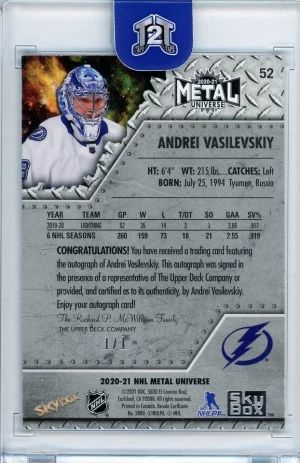 2020‑21 UD Metal Universe Andrei Vasilevskiy Gold PMG Autograph 1/1