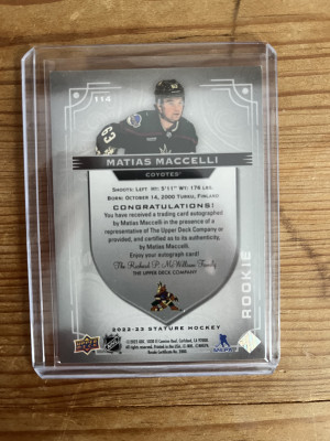 22-23 Stature Matias Maccelli Rookie Auto 155/199