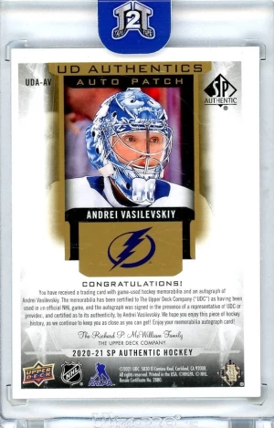 2020-21 Upper Deck SP Authentic Authentics Patch Auto /25 Andrei Vasilevskiy