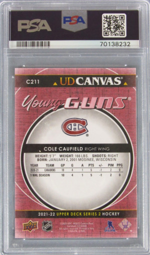2021-22 Upper Deck Cole Caufield Young Guns Canvas Rookie PSA 10