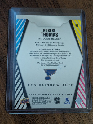 Robert Thomas #82 2022-23 Upper Deck Allure St. Louis Blues - Red Rainbow Auto