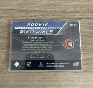 2020-21 UD Rookie Materials Jersey Brady Tkachuk