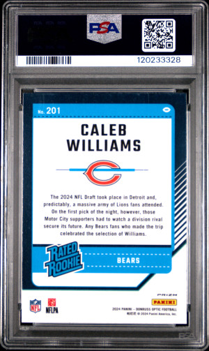 2024 Panini Donruss Optic Caleb Williams #201 Blue Hyper Rated Rookie PSA 9