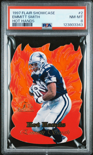 1997 Flair Showcase EMMITT SMITH Rare HOT HANDS DIE-CUT INSERT #2 - GRADED PSA 8 Dallas Cowboys