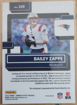2022 Donruss Optic Nailet Zappe Auto 97/125