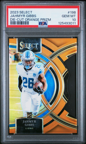 2023 Panini Select Jahmyr Gibbs Die-Cut Orange Prizm /399 PSA 10