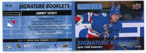 2016-17 UD Premier #PS-JV Jimmy Vesey Rookie Signature Booklet