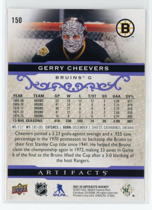 2021-22 Artifacts #150 Gerry Cheevers Indigo 5/10