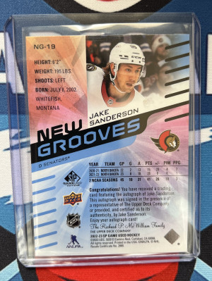 2022-23 SP Game Used New Grooves Rookie Auto Jake Sanderson