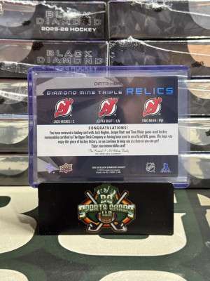 Diamond Mine Trios Jack Hughes - Jesper Bratt - Timo Meier Game Used