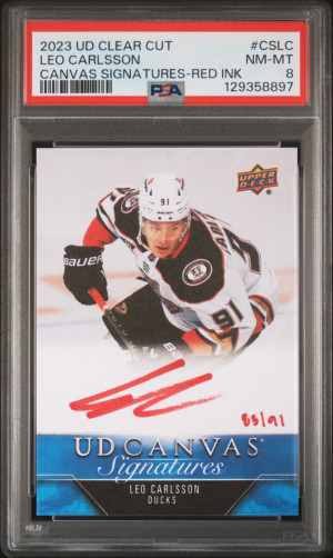 2023 Upper Deck Clear Cut Canvas Signatures Leo Carlsson Red Ink /91