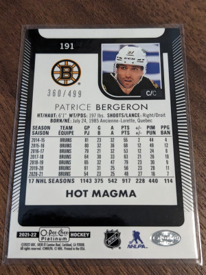 Patrice Bergeron Hot Magma /499 O-pee-chee Platinum OPC Bruins
