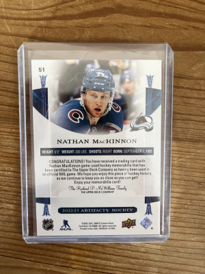 22-23 Artifacts Nathan MacKinnon dual game worn relic /249