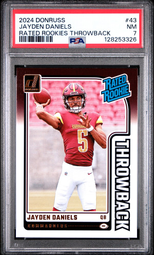 2024 Panini Donruss Rated Rookies Throwback Jayden Daniels PSA 7