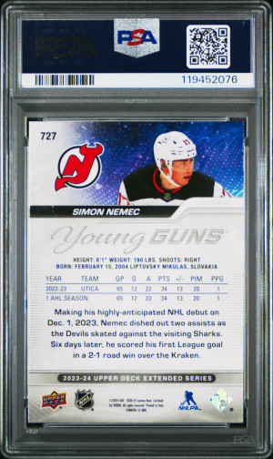 2023-24 Upper Deck Extended Series Speckled Rainbow Foil YG #727 Simon Nemec PSA 9