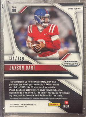 2025 Prizm Draft Picks Red Jaxon Dart RC /399