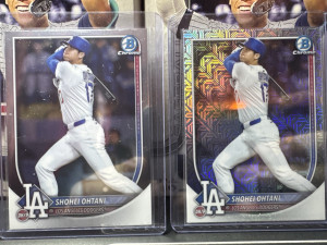 2 Cards 2025 Bowman Chrome And Base - Shohei Ohtani #17 Mega Box Mojo Refractor And Base.
