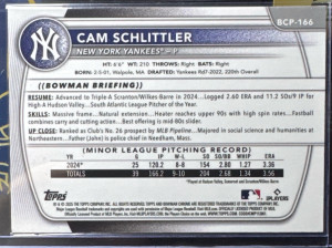 2025 Bowman Chrome Prospects Cam Schlittler - Mojo Refractor BCP-166