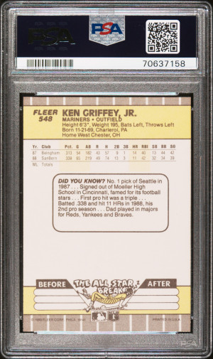 Ken Griffey Jr. 1989 Fleer #548 Rookie RC PSA9 MINT Mariners