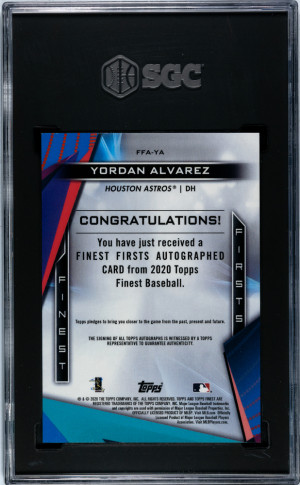 2020 Topps Finest Firsts Auto Yordan Alvarez #FFA-YA SGC 10/10 Rookie RC Astros
