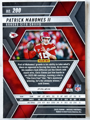 Patrick Mahomes 2025 Mosaic Purple Scope Mosaic Prizm SSP