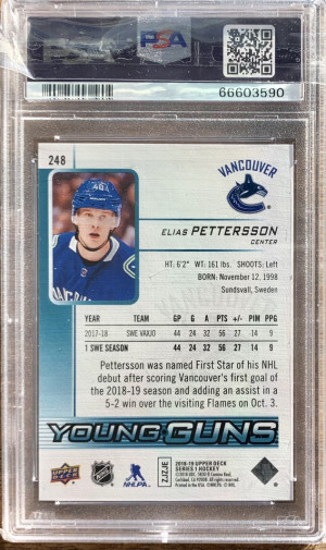 2018 Upper Deck Hockey Young Guns #248 Elias Pettersson RC Rookie PSA 10