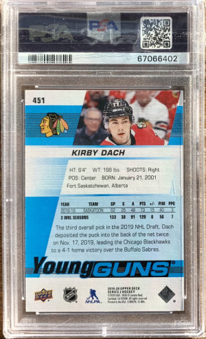 2019-20 UPPER DECK YOUNG GUNS KIRBY DACH RC ROOKIE #451 PSA 10