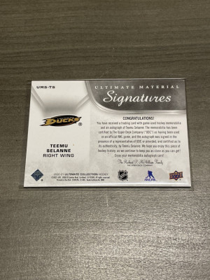 Teemu Selanne /25 Ultimate 20-21 Auto Jersey
