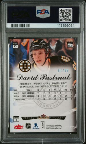 2014-15 Fleer Showcase Flair David Pastrnak #63 Blue Ice 67/99 Rookie RC PSA 8