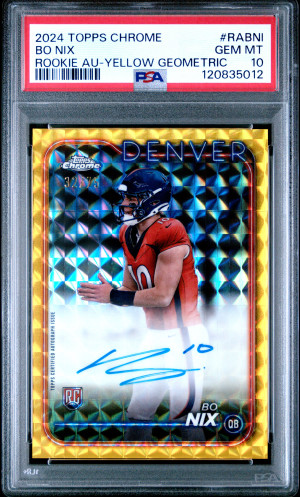 2024 Topps Chrome Rookie Autographs Bo Nix - Yellow Geometric 32/75 PSA 10