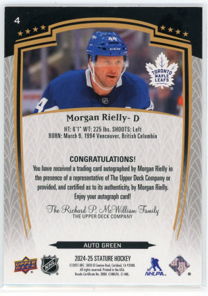 2024-25 Upper Deck Stature Morgan Rielly Autograph Green 13/199