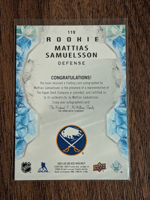 2021 Upper Deck Ice #119 Mattias Samuelsson Auto Rookie on card auto
