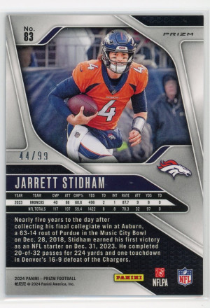 2024 Panini Prizm #83 Jarrett Stidham Blue Ice /99