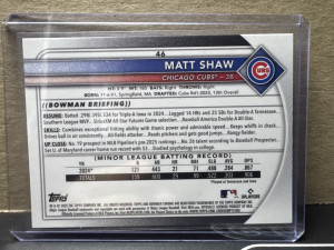 2025 Bowman Chrome Matt Shaw Pink Mega Parallel /199 RC #46 Cubs