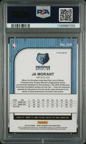 2019 Panini Hoops Premium Stock Ja Morant Psa 10 Blue Prizm