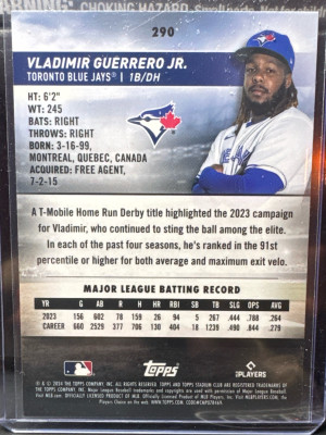 2024 Stadium Club CHROME Parallel #290 Vladimir Guerrero Jr., Toronto Blue Jays