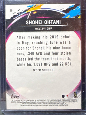 Topps 2020 Fire Shohei Ohtani #49 Los Angeles Angels MLB Baseball Card