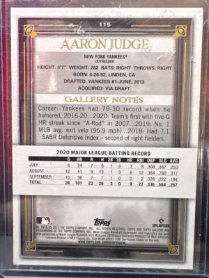 2021 Topps Gallery #115 Aaron Judge New York Yankees