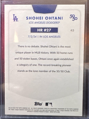 2024 Topps SHOHEI OHTANI 50/50 CARD #43 - HR #27