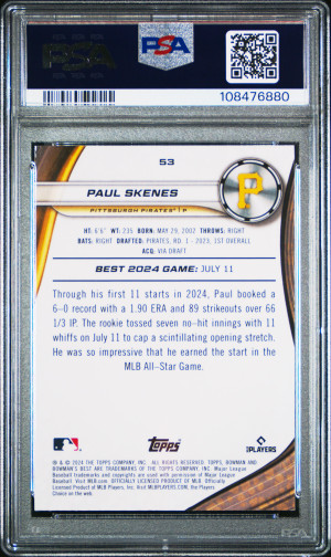 2024 Bowman's Best Paul Skenes Purple Mojo Refractor 043/250 Rookie