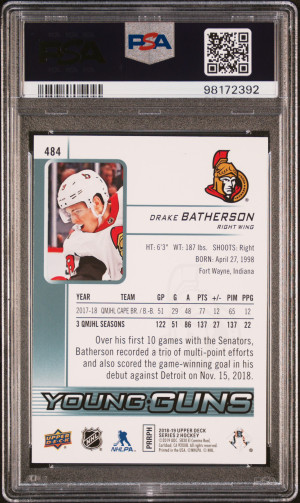 2018 Upper Deck Drake Batherson Young Guns PSA 10 Gem Mint