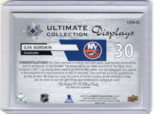 22-23 Ultimate Hockey Displays Auto Jersey UDA-IS Ilya Sorokin (54/99)