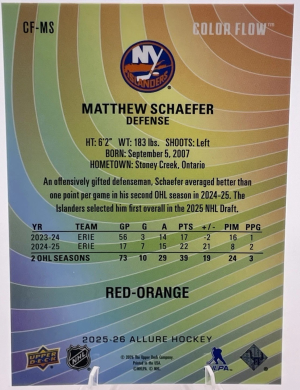 2025-26 Allure Hockey Matthew Schaefer Color Flow Red-Orange Islanders RC