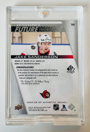 2022-23 Upper Deck SP Authentic Auto Future Watch Jake Sanderson Rookie /999