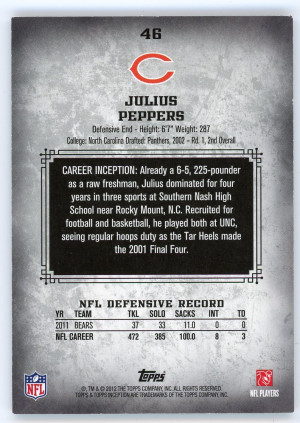 2012 Topps Inception #46 Julius Peppers Green 13/75
