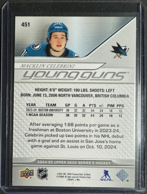 2024-25 Upper Deck 451 Macklin Celebrini Young Guns