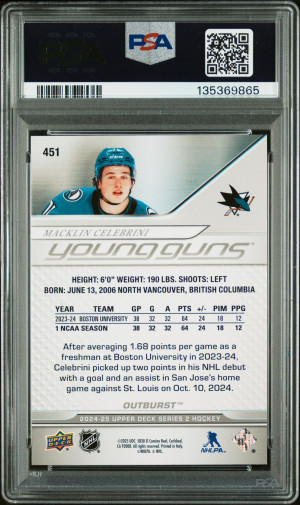 2024 Upper Deck Macklin Celebrini Young Guns Outburst #451 PSA 9
