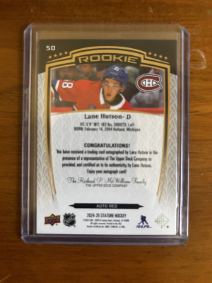 2024-25 Stature Lane Hutson Red Auto #50 (89/99)