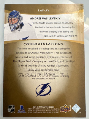 Andrei Vasilevskiy, 2021-22 Artifacts, Autofacts Auto