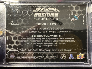 2021-22 UD Black, Black Obsidian Scripts- Tomas Hertl